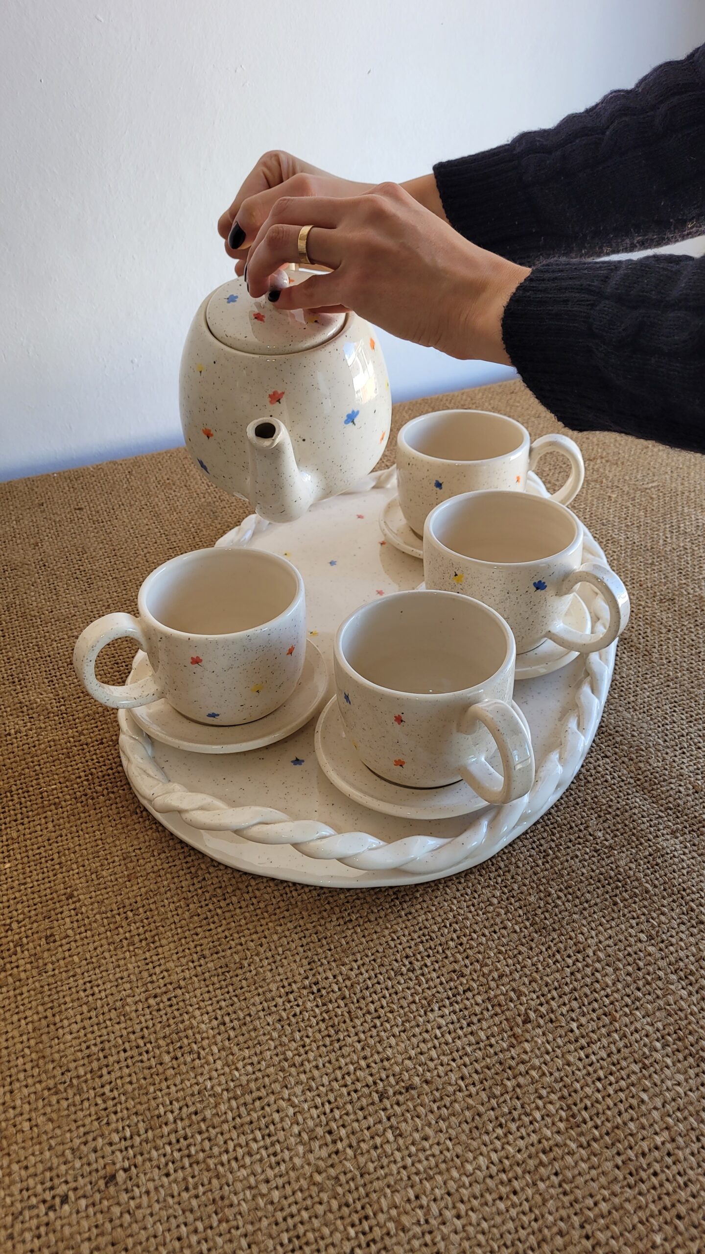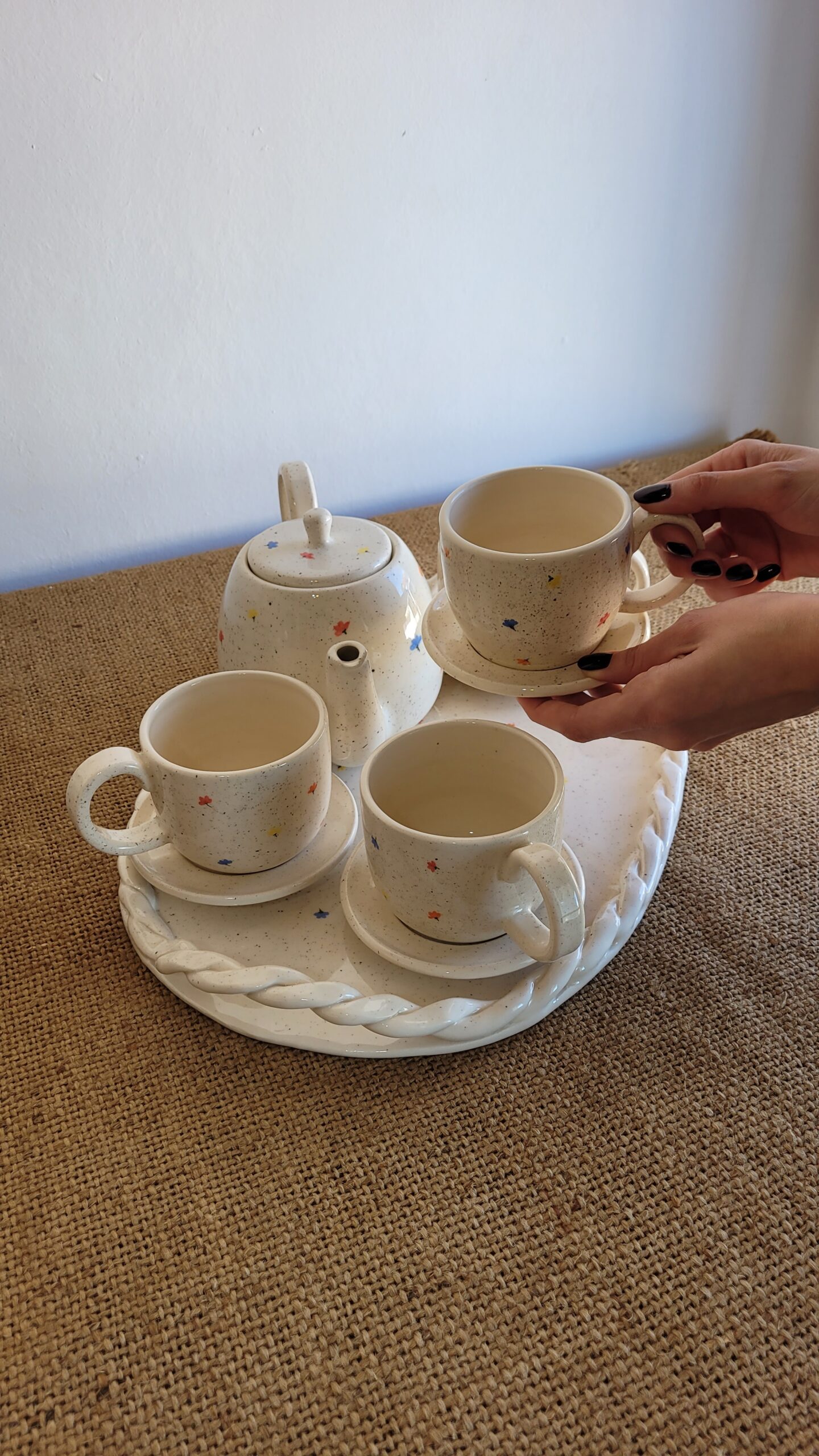 Juego de té de cerámica. Todas nuestras piezas de cerámica son realizadas y esmaltadas 100% a mano. Al ser un producto artesanal, pueden tener pequeñas variaciones entre sí ya que cada pieza es única. Las fotos de nuestros productos reflejan lo más fielmente posible los colores y detalles. Se realizan a pedido con 25 a 30 días de anticipación. Colores a convenir por privado. Por cualquier duda al respecto, no dejes de consultarnos.